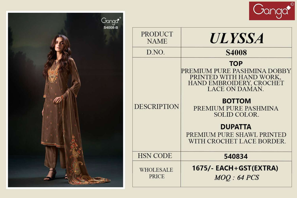 Ganga Fashion Ulyssa 4008 Woolen Pashmina Handwork Salwar Suit