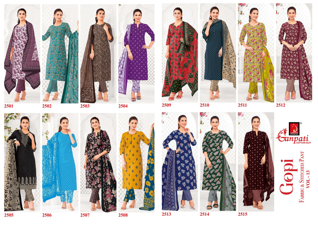 Ganpati Gopi Vol 13 Heavy Cotton Suit Set with Cotton Dupatta