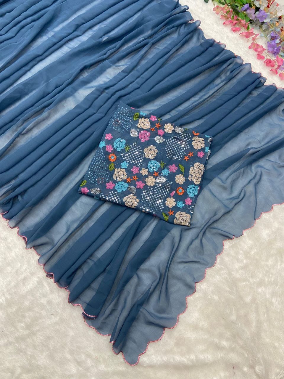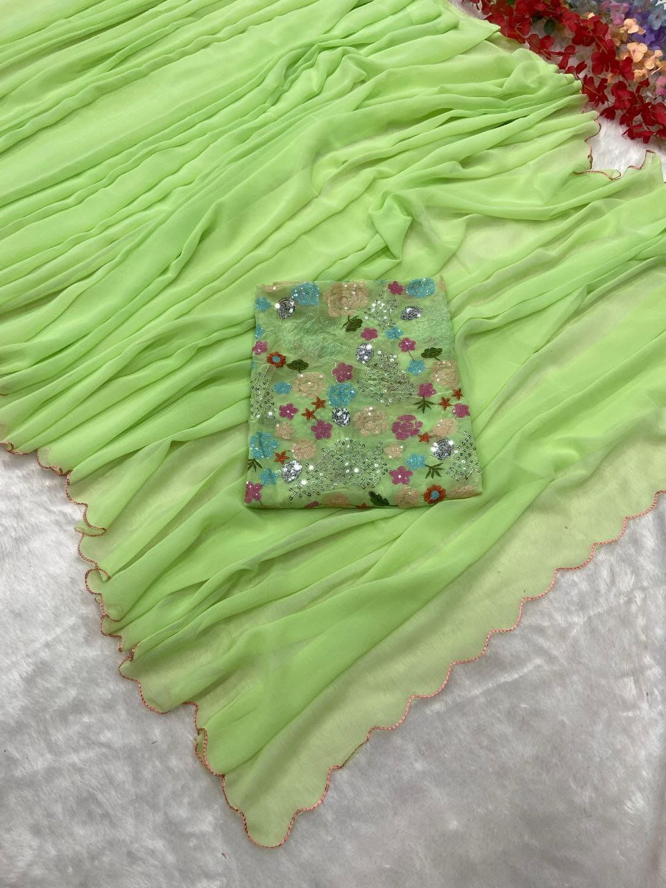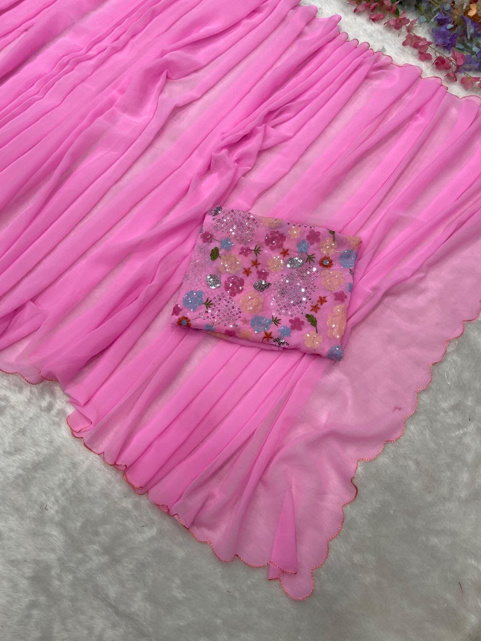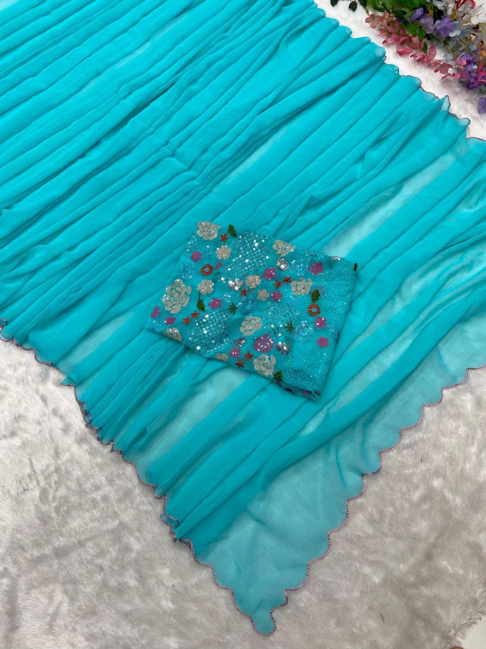 Saree : Premium Georgette Embellished With Beautiful Arca Cutwork Border Work Blouse : Premium Georgette Embellished With Beautiful Multicolour Four Sequins Work All Over( Unstiched ) |