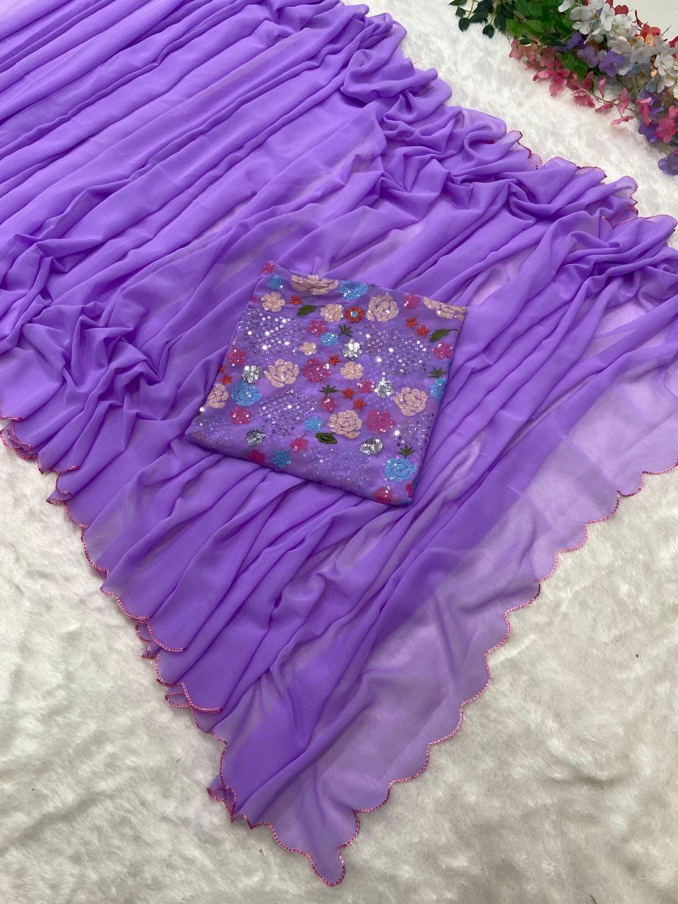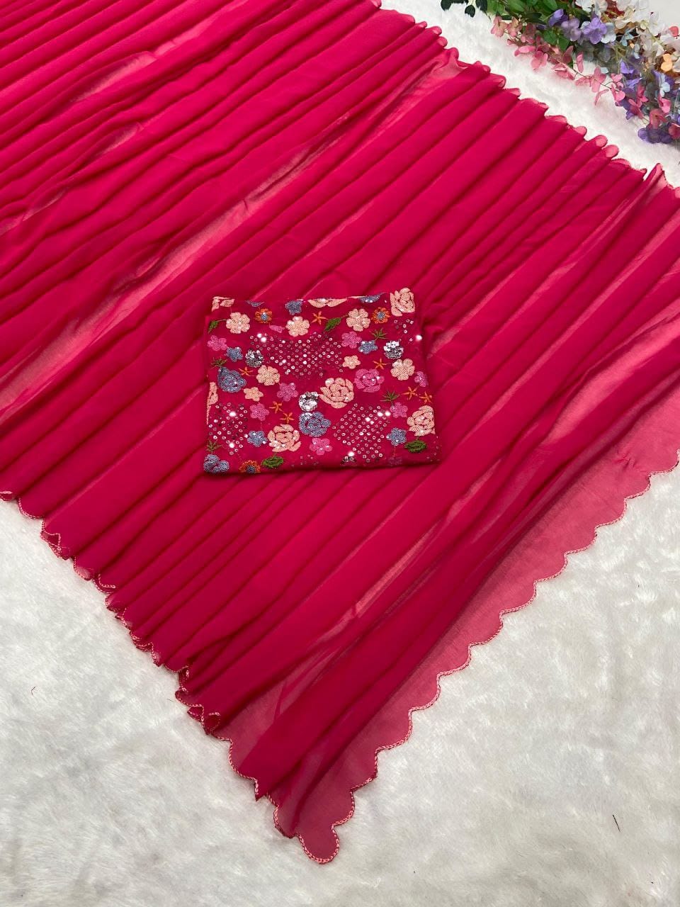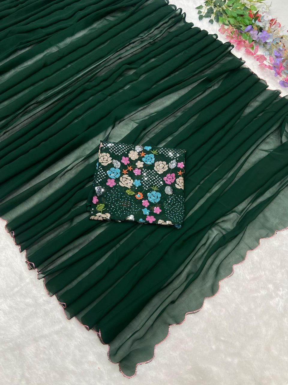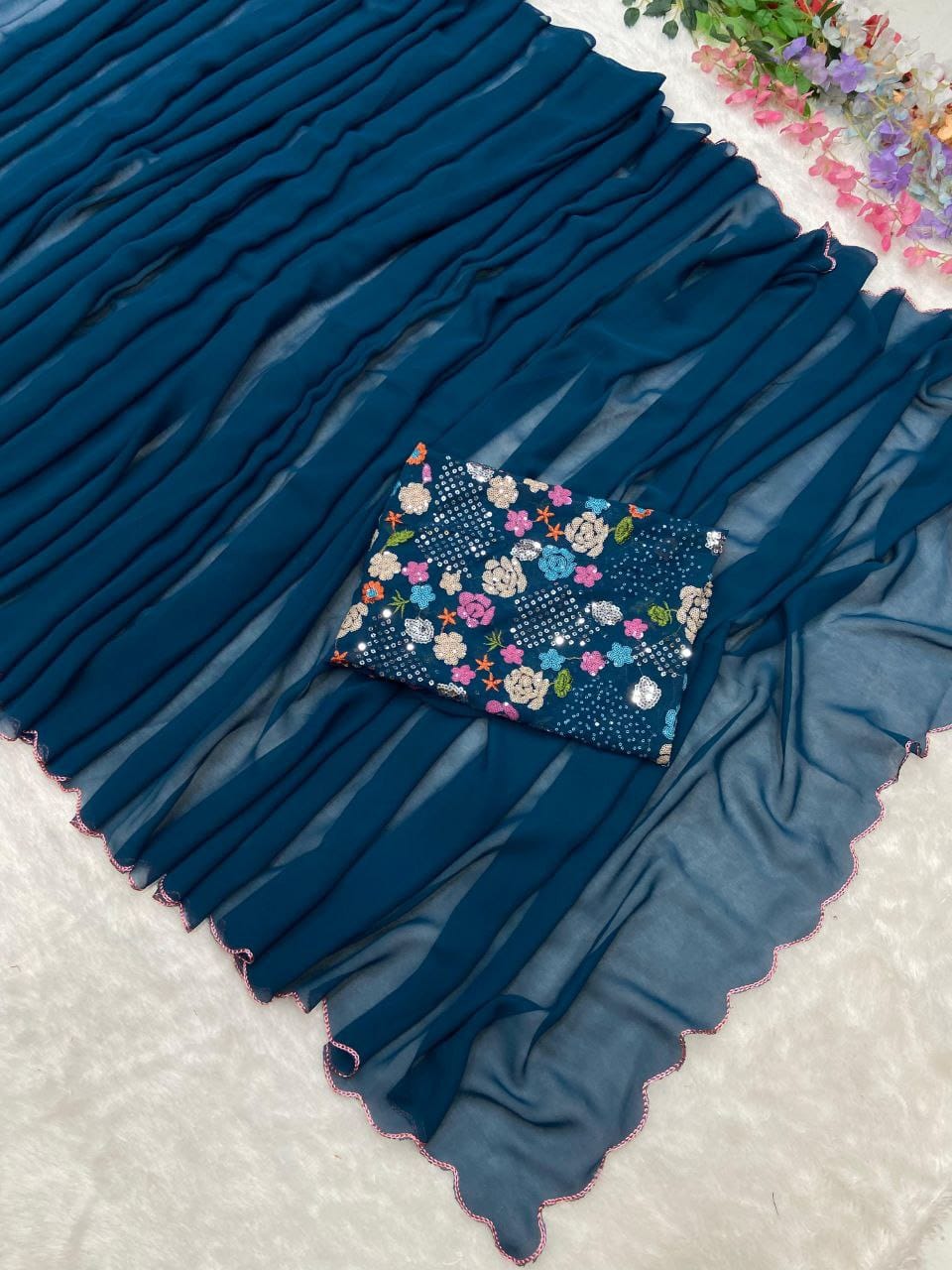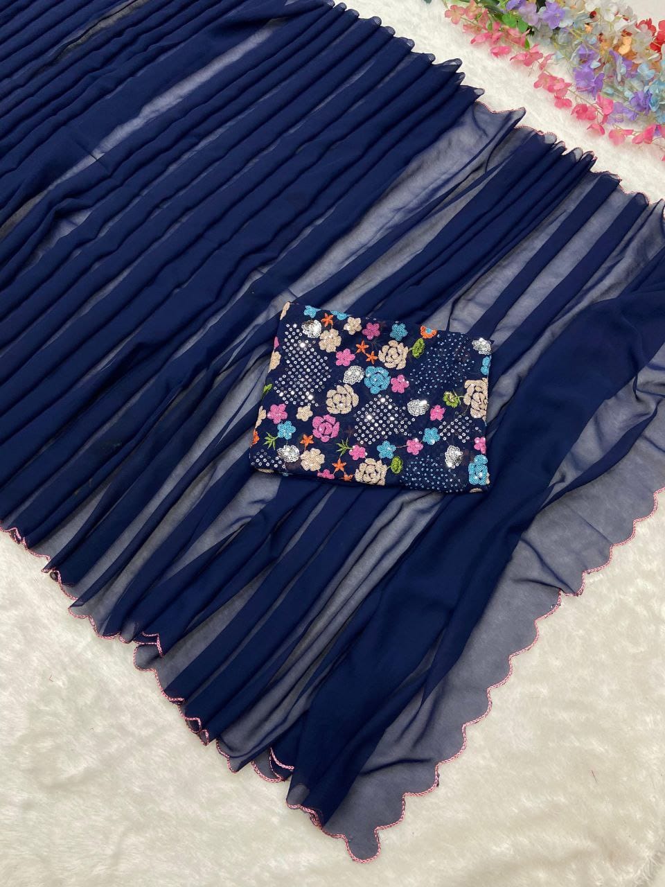 Saree : Premium Georgette Embellished With Beautiful Arca Cutwork Border Work Blouse : Premium Georgette Embellished With Beautiful Multicolour Four Sequins Work All Over( Unstiched ) |